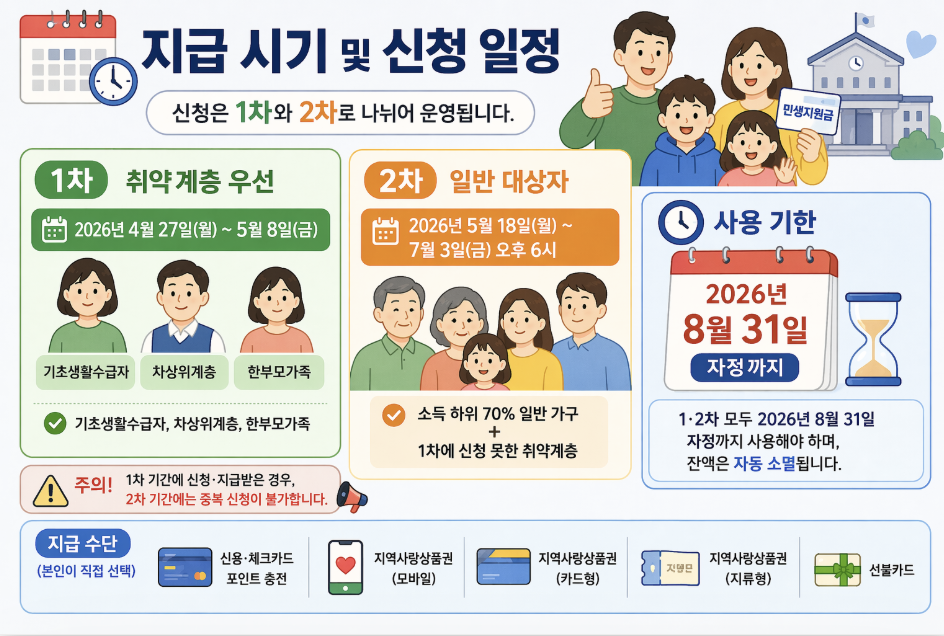 1차 (취약계층 우선): 2026년 4월 27일(월) ~ 5월 8일(금)