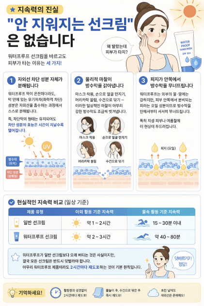 워터프루프 선크림 완벽 가이드: 원리·지속력의 진실·일상 사용법까지
